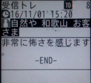 | 郵便局 → 農園はこすけ 2016年11月10日(木) 18:34 .お客様サービス相談センター(sodan) <sodan@jpcc-post.jp>: 矢野 智大 様 この度の件では、再度ご連絡をいただくお手数をおかけし、 お申し出につきましては、 大変恐れ入りますが、以下の情報を、 ■矢野様のご連絡先電話番号 ■ご連絡の際に、ご都合のいい日時 ご多忙の折、お手数をおかけするお願いとなりますが、 何卒ご連絡の程お願い申し上げます。 |